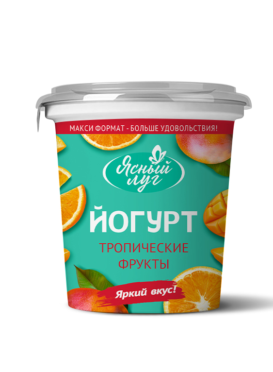 Йогурт с наполнителем “Тропические фрукты” ТМ “Ясный луг” 2% 380 г