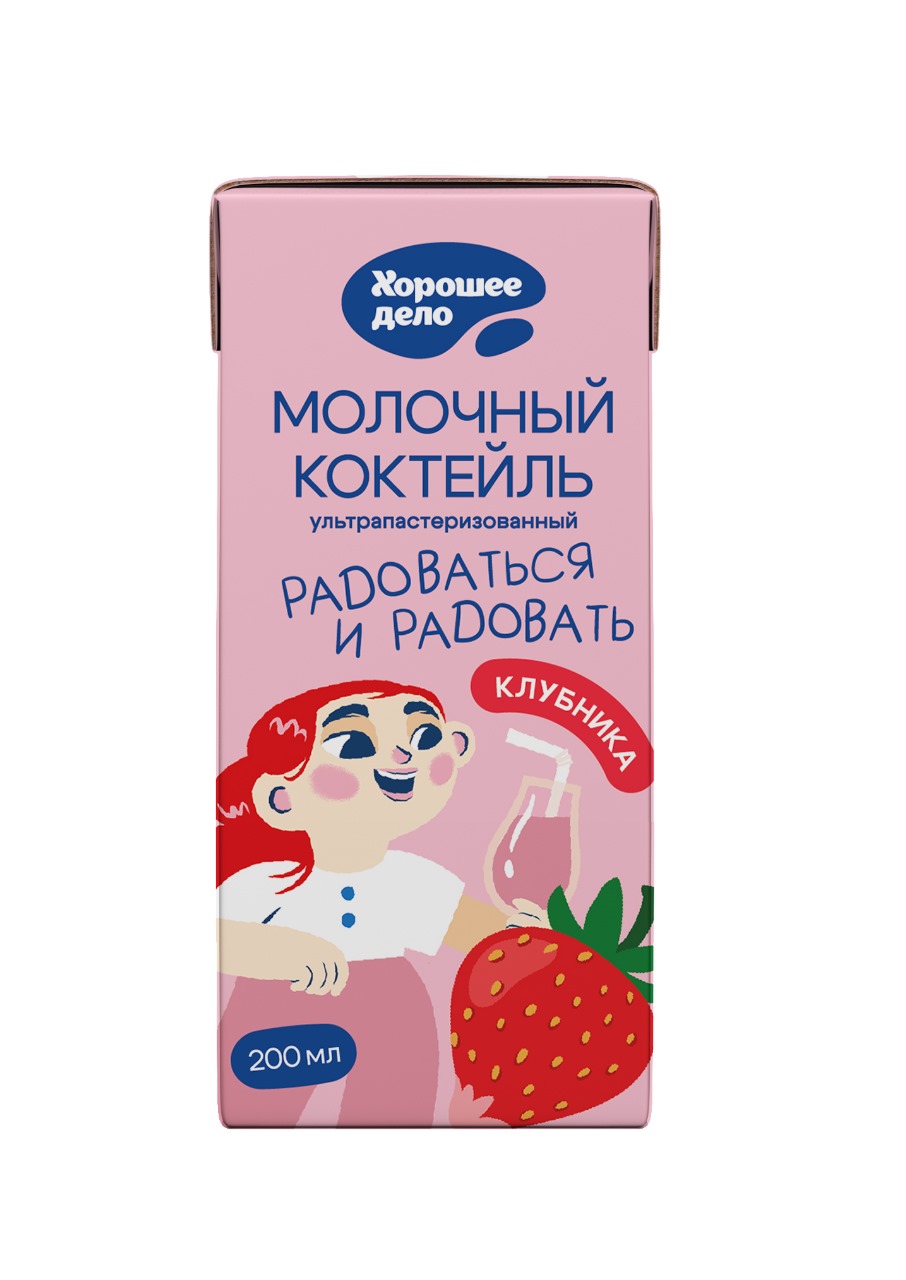 Коктейль молочный ТМ “Хорошее дело” со вкусом “Клубника” 2% 0,2 л