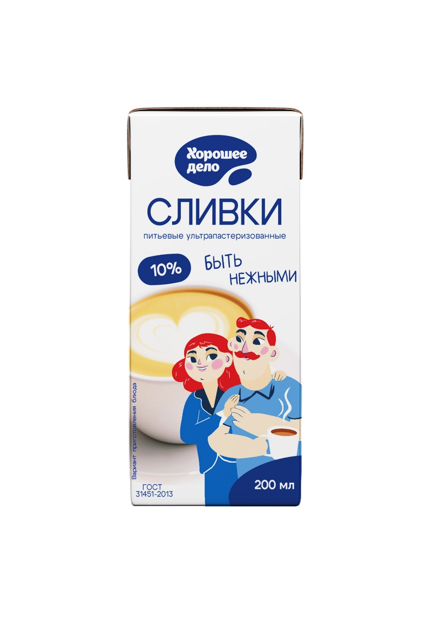 Сливки ТМ “Хорошее дело” питьевые ультрапастеризованные ГОСТ 10% 0,2 л